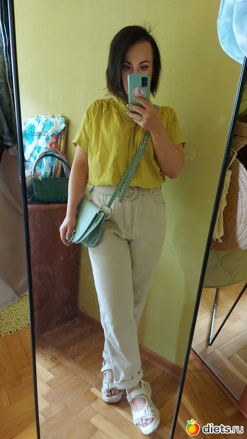 Блузка из хлопка с коротким рукавом. Очень понравился желто-лаймовый оттенок, ткань фактурная в пупырышку. Блузка свободная, спущенный рукав опять-таки хорошо маскирует верхнюю часть руки. Reserved, 25/13 евро