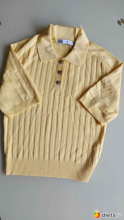 А это явно женственное: трикотаж, блестящие пуговицы, нежно-желтый цвет... В общем, тем и понравилось
