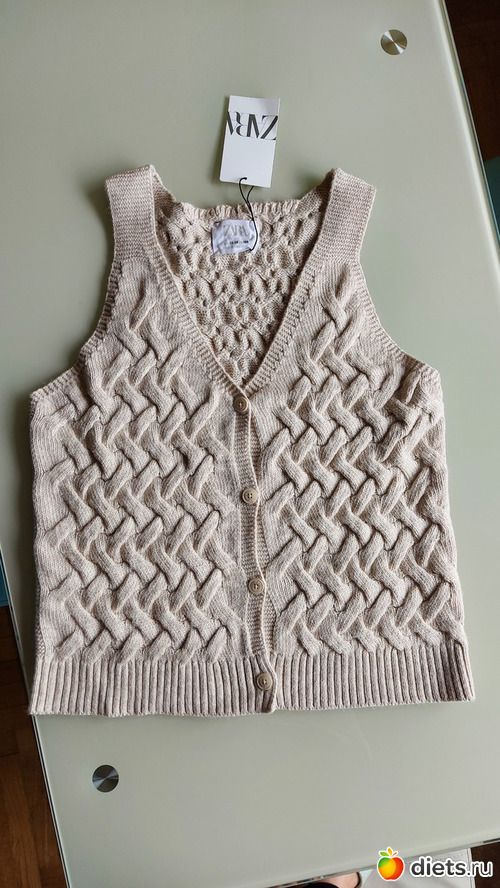 Этот жилет из отдела для девочек я заказывала еще зимой, но вернула. Думала связать сама, даже начинала, но распустила... В итоге когда увидела, что он пошел на распродажу, купила. Zara, 20/13 евро (в конце распродажи подешевел даже до 9, но уже не оставалось моего размера