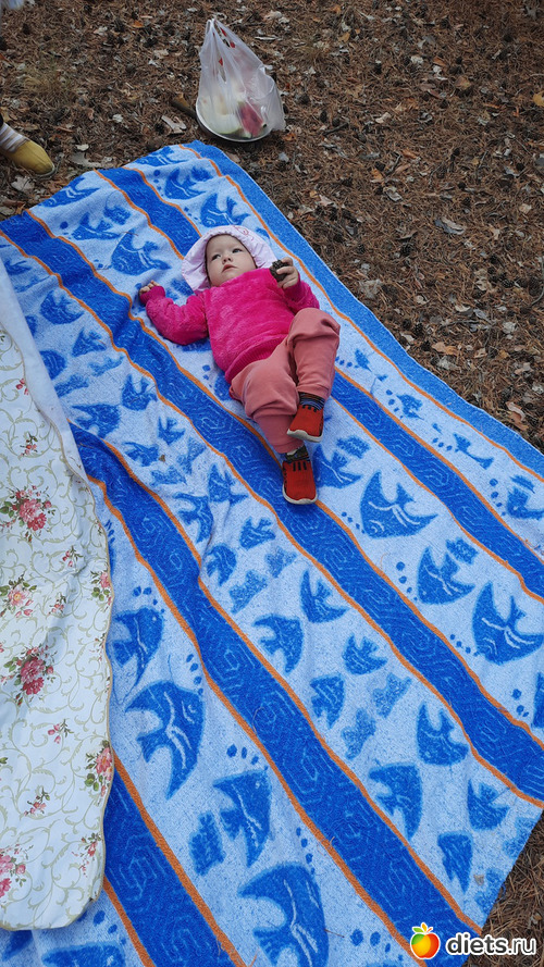 расстелили покрывала, Кирочка сразу бухнулась на него.