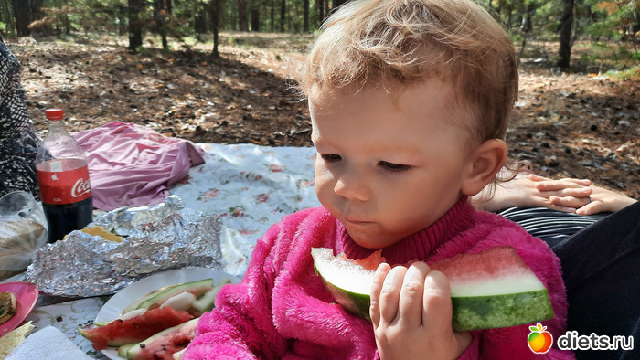 хорошо посидели. поговорили, посмеялись. арбуз-дыню кушали. гуляли по лесу.