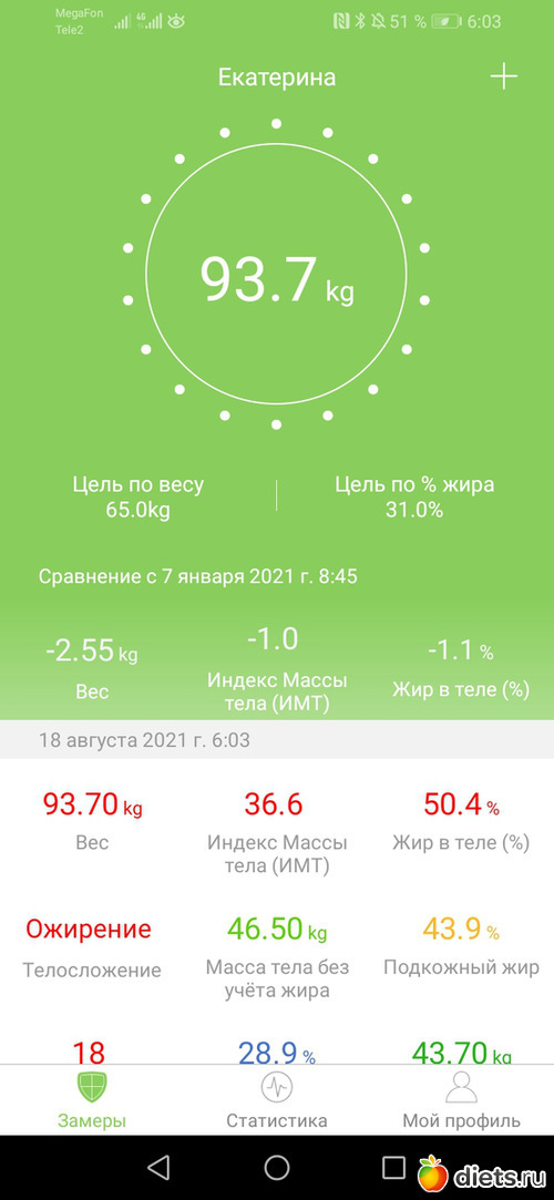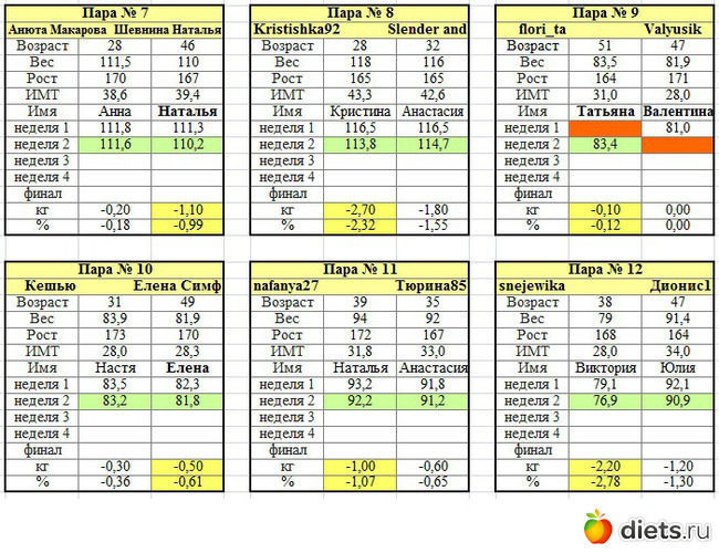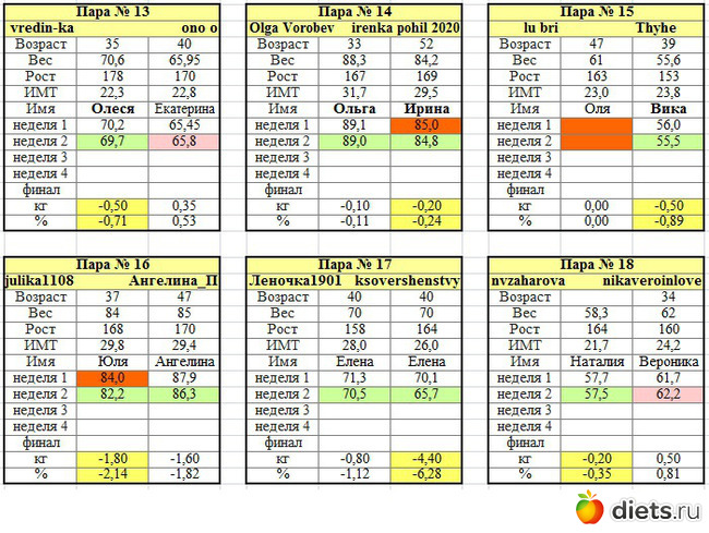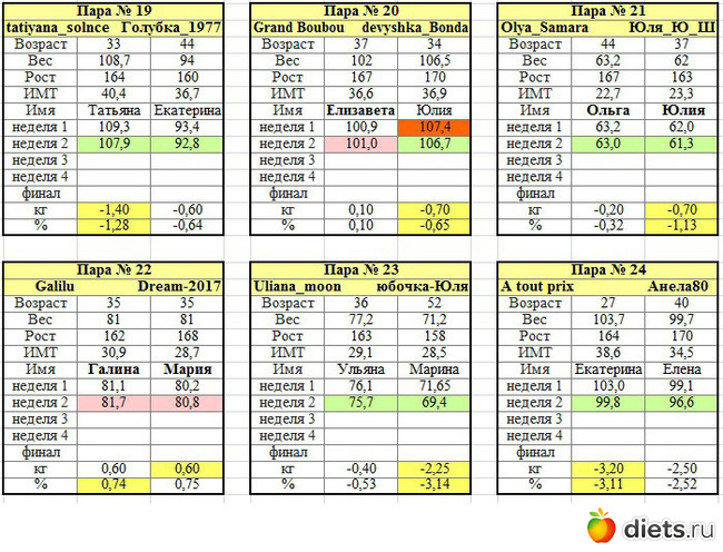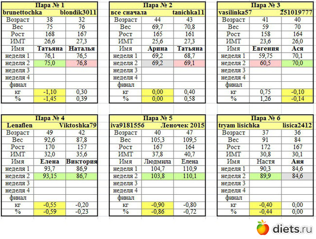 У меня тоже привес. Хотелось бросить. Но ради напарницв я тут а то как то не оч будет. И на этой неделе боюсь привеса. Ну что ж поделаешь ((