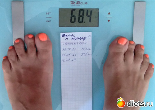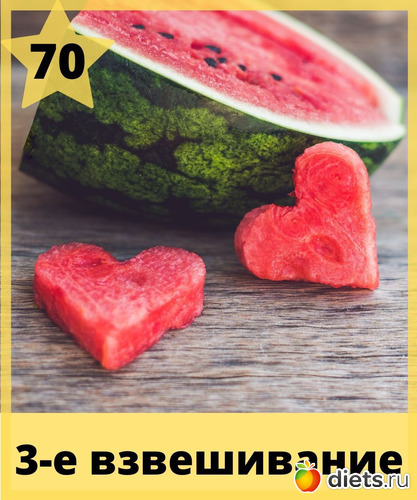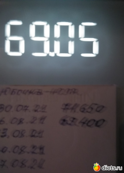 Выкладываю свой результат. Отвес есть, но небольшой. В начале недели после выходных и празднования ДР подружки было + 1 кг, который никак не могла сбросить. Пришлось 2 дня разгружаться, убрала практически все углеводы. Тяжеловато, но хоть результат есть: и набранное ушло, и сбросить получилось немного, итого -700. Но завтра ДР у брата, вот думаю, как минимизировать результат. Буду есть овощи и шашлык. И арбуз
