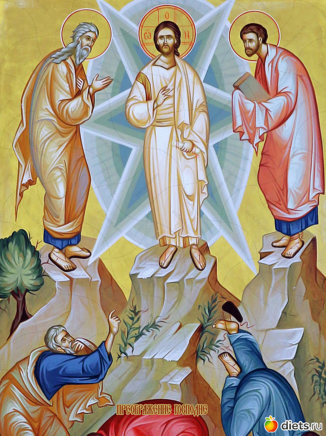 По прошествии нескольких дней Господь, взяв с собой Петра, Иакова и Иоанна, поднялся на гору Фавор, чтобы помолиться. И когда они оказались на вершине, Христос преобразился перед ними: и просияло лице Его, как солнце, одежды же Его сделались белыми, как свет. При этом явились два великих ветхозаветных пророка — Илия и Моисей, которые беседовали с Господом о Его будущих страданиях и смерти.