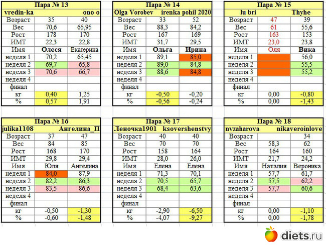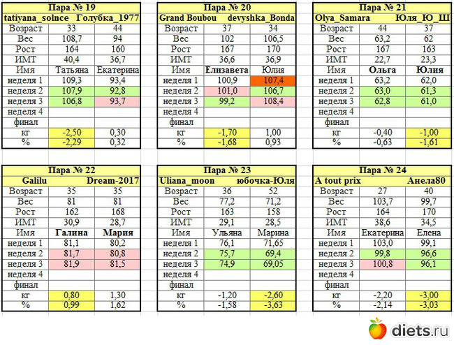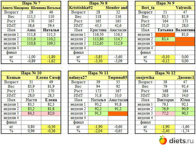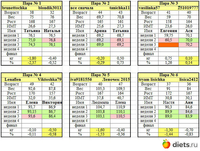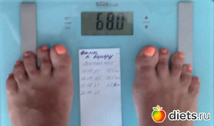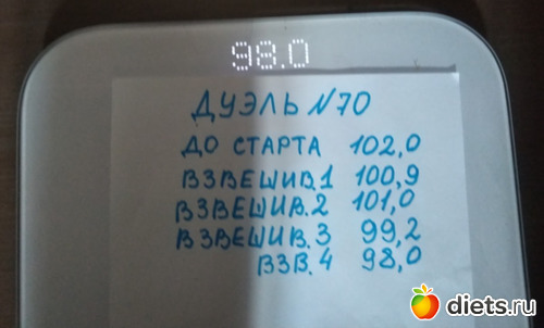Потеряла свою бумажку на дуэль(((отыес есть, хоть и небольшой, всю неделю сжигала огромный привес. Смогла, даже в минус ушла. Много ходила, считала калории, видимо, это и помогло