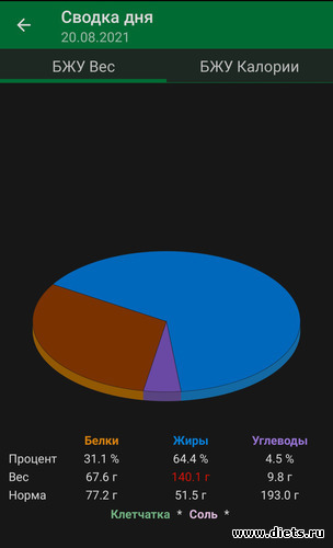 Про "впихивать". Тут главное белок не занижать, а жиры можно и не добирать до нормы. Я уже писала примерную пропорцию в граммах Люде. Попробуй и ты ее применять(ну примерно) белок 60-70 гр в день делишь поровну на все приемы пищи(если два, то по 30-35 гр за раз), и жиры 120 гр в день(это по 60 гр примерно на раз при двухразовом питании). Я ям три раза в день, поэтому стараюсь держать 20-25 белка и 35-40 гр жира в один прием. Ну и угли, соответственно, распределяешь. Кето, именно чистое строгое - это соблюдение пропорции в КАЖДОМ приеме пищи. Ну и еще куча всякого))) но пропорция тут ключевую роль играет.