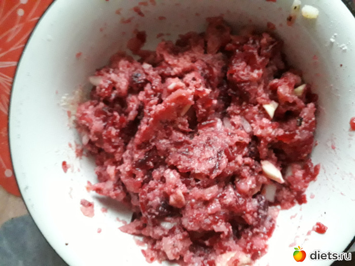 Добавить мелкопорезанный лук, чеснок, соль, молотый перец и немного манки. Масса по густоте должна получиться такой, чтобы можно было сформовать котлеты. Это можно сделать, варьируя количеством манной крупы.