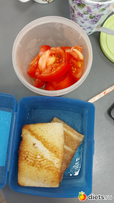 тоже частый вариант - тофу. Что б включить овощи в рацион беру с собой помидор, огурец или болгарский перец. Все остальные рабочие обеды - яичницы.