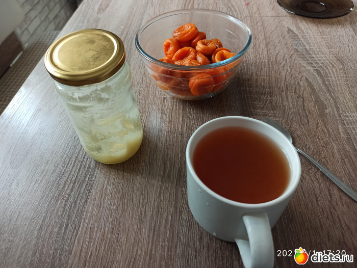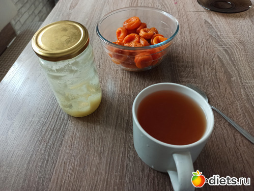 Ну, и конечно же, сладкое (ем его минимум 3 раза в день) - мёд, курага и отвар шиповника