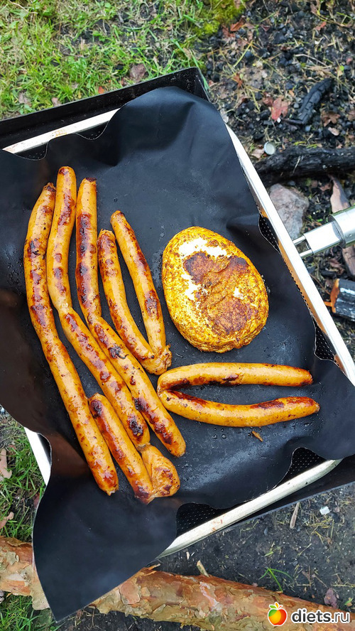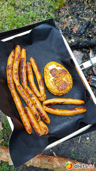 На ужин готовили колбаски (и творожный сыр), покупали готовые в магазине. Все-таки готовые полуфабрикаты ни в какое сравнение не идут с домашними, это был одназначно самый неудачный ужин на мангале за все лето