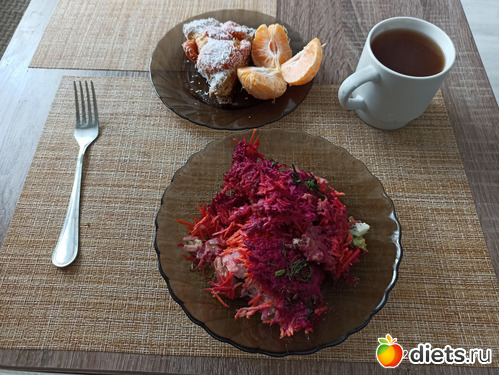 Остатки шубы, абрикосовый пирог, мандаринка и шиповник.