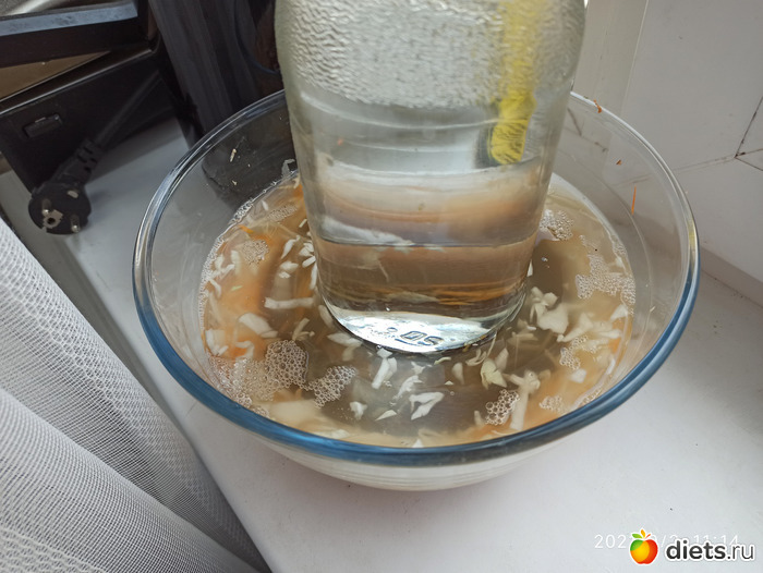 Впервые в жизни попробовала заквасить капусту, нашла рецепт безсолевой квашенной капусты. Как ни странно, у меня получилось