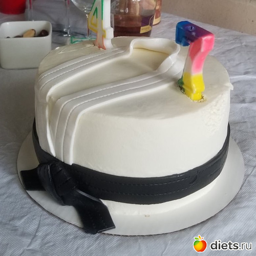 А почему мужу тортик с черным поясом, он как-то связан с карате?