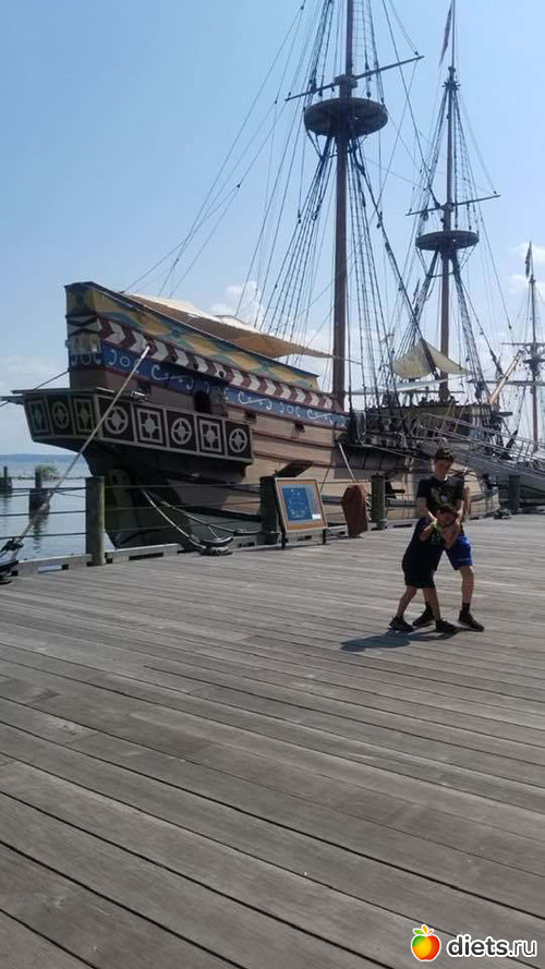 Еще мы съездили в один исторический город тоже с кораблями пилигримов и деревнями местного поселения. Вот такие мы симпатичные