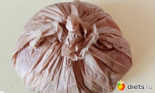 Плотно заворачиваем. Сверху собираем концы пергамента в узел.
