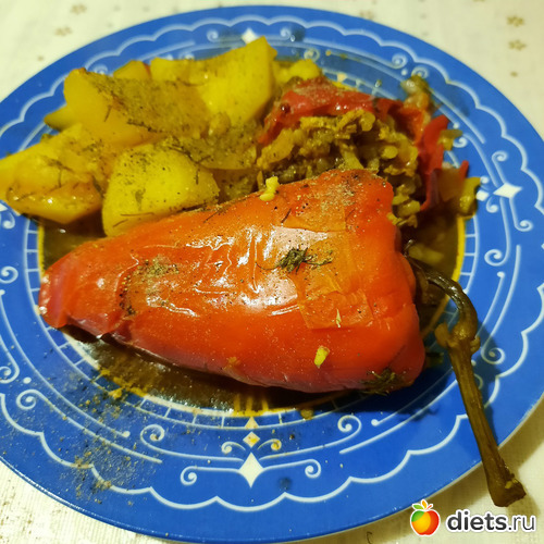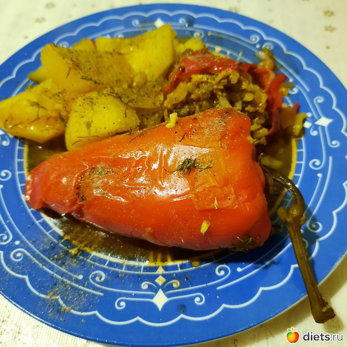 картошечку прям в казан с готовящимся перчиком добавила, так что она сготовилась в его собственном соку, и получилась умопомрачительной)))