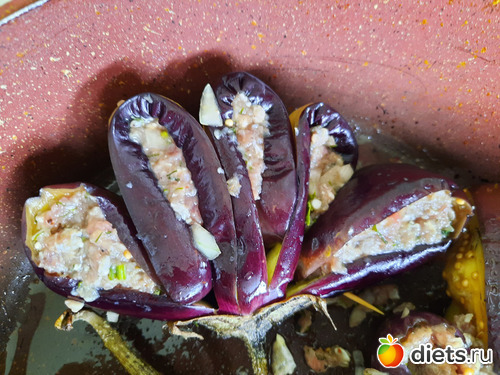 в эту прелесть, внутрь дырочек я запихала фарш