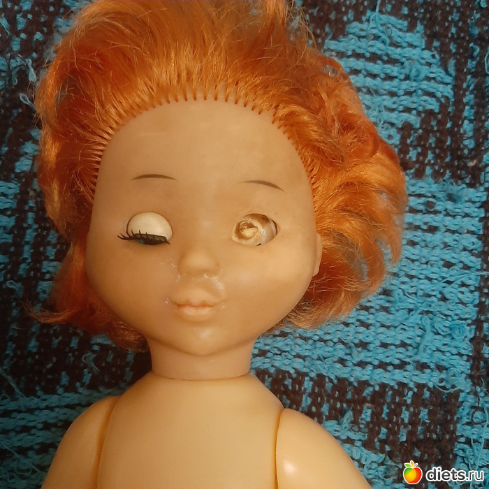 От времени резинки, которые крепили ручки-ножки, ослабли. Тельце и личико стали серыми от пыли. Волосы спутались. Платье из шитья и кружев пришло в негодность. Фата потерялась.
