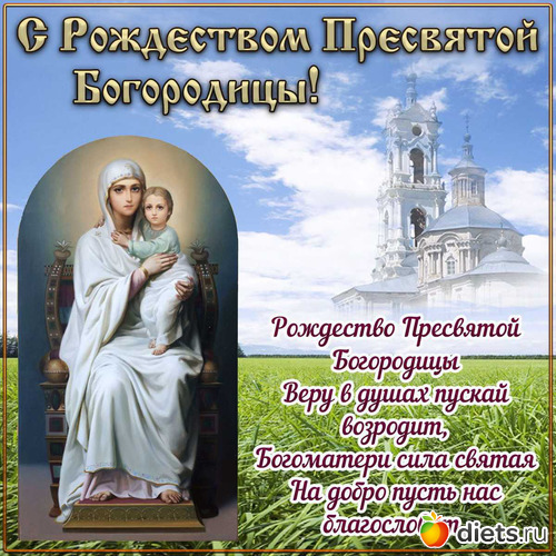 Пусть во благо и добро будут все Ваши дела. Пусть в Рождество Пресвятой Богородицы вас окружает свет, который укажет верный путь для решения любых задач. Желаю самых теплых и мирных дней, в окружении любимых и близких людей. Сердечно поздравляю!