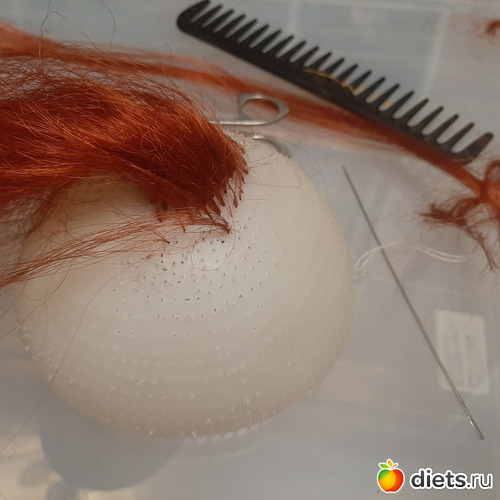 Вот теперь занимаюсь прошивкой волос, купила в фикспрайсе ободок карнавальный и из него делаю волосы
