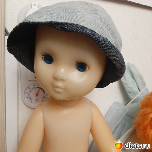 Пришел в гости внук, посмотрел на куколку, испугался, что у нее полголовы нет и та лысая. Я приготовилась заняться прошивкой волос. Пришлось срочно надеть на Наташу шляпку.