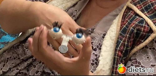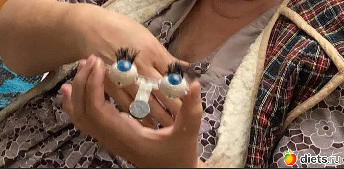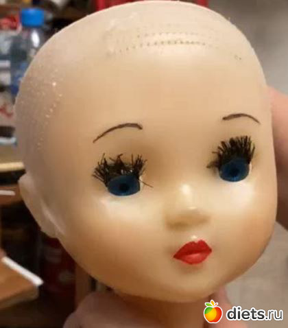 И тут я обратила внимание, что у нее реснички вырваны или вырезаны. Нужны новые. Вынула механизм, прочистила, отшлифовала сами глазки, вставила новые реснички.