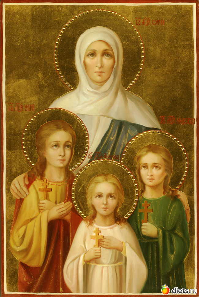 Их мать радовалась духом, видя столь славные подвиги дочерей, достигших небесных обителей, но ее человеческое сердце было столь измождено страданием, что через несколько дней святая София отошла ко Господу на могиле своих чад.