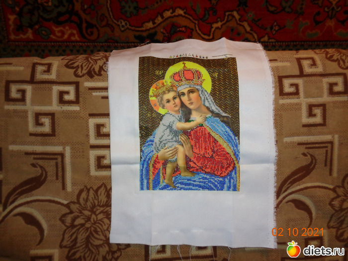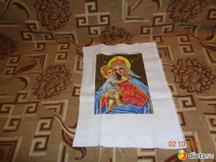 Я тоже такую вышивала,потом приложила к сильной (по моим ощущениям)иконе и маме отдала.Она специальную рамку заказывала.