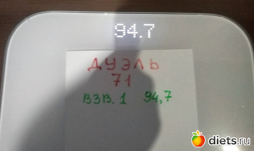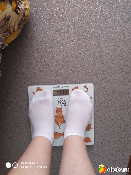 Даже свет не включала, чтобы не спугнуть циферку... конечно деньрожденный торт подгадил, но терпимо - к старту подошла с отвесиком.