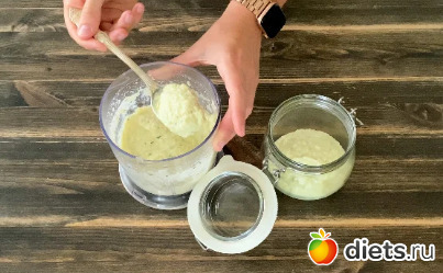 Дальше отправляем в блендер брынзу и измельчаем все вместе на максимальной скорости примерно 30 секунд:
