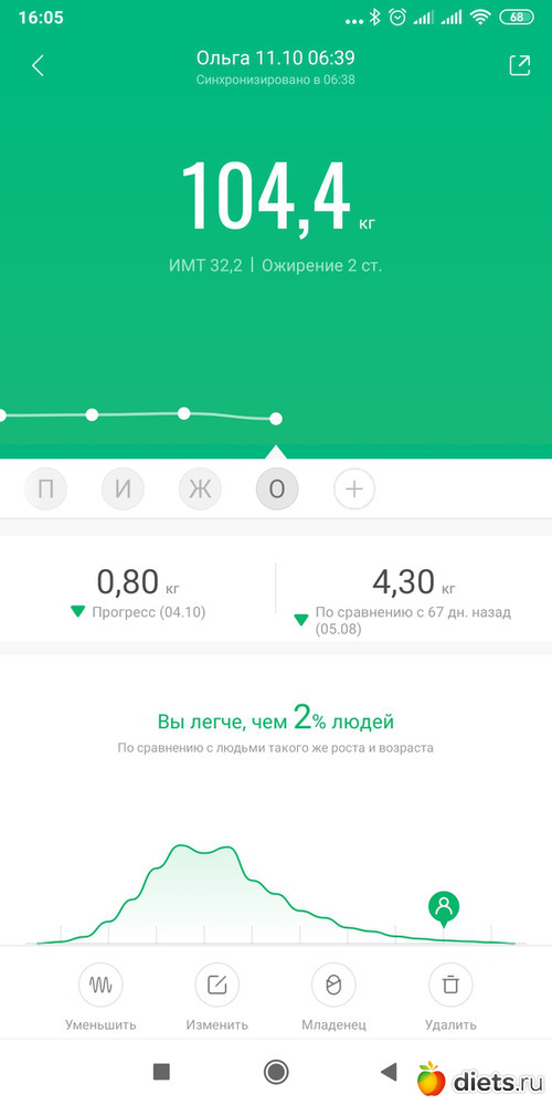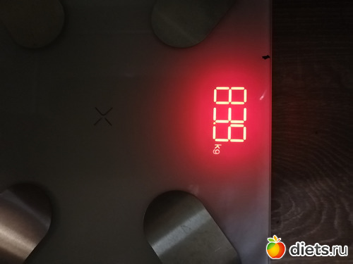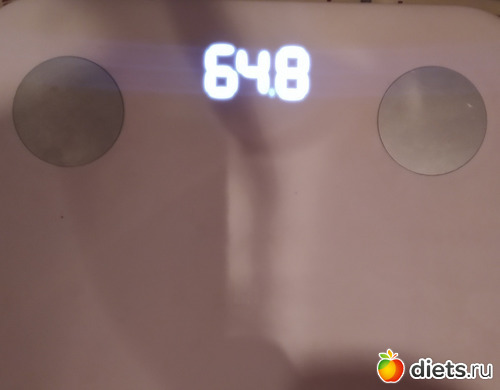 Утром, когда взвешивалась, мои домашние изволили ещё спать, свет включить не было возможности, поэтому фото получилось нечитаемое. Выкладываю данные с приложения.