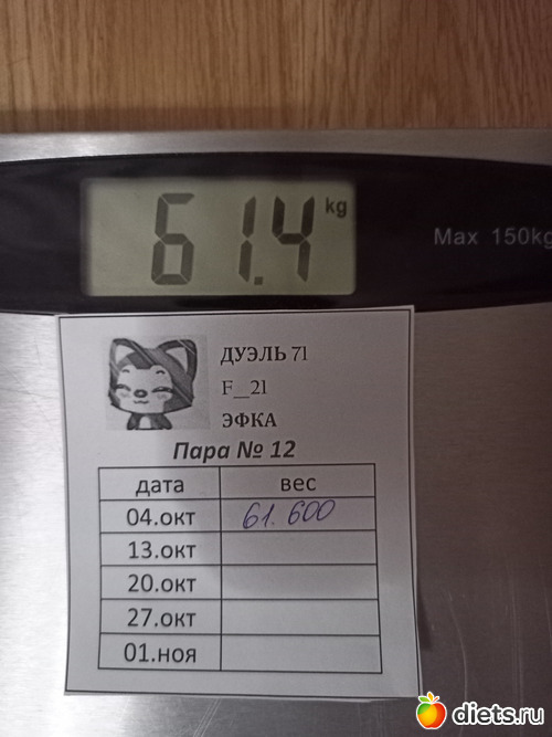 Я уже поела,так что завтра выставлю вес.