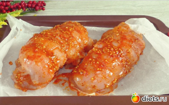 У меня грудка провела в холодильнике, в солевом растворе ночь, утром я сушу её бумажным полотенцем и готовлю пряную глазурь.