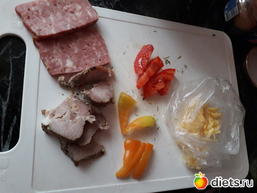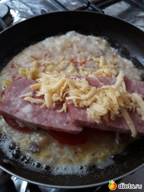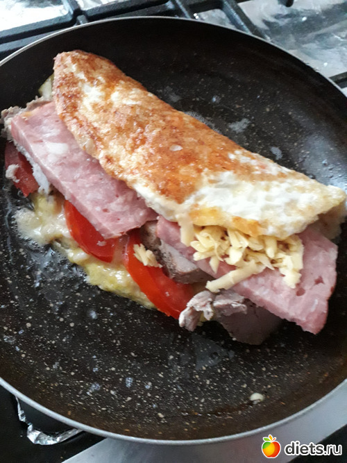 -Яичница с овощами, бородинским хлебом, сушеным базиликом. Бутерброды