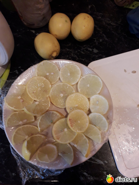 И лимоны буду теперь дольками морозить. Бывает, что уезжаем, а поллимона остаётся. Буду резать и морозить.