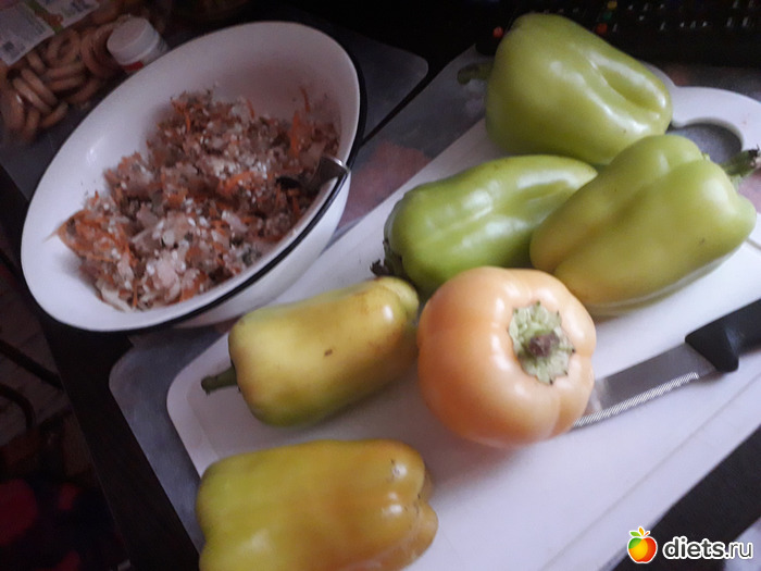 -Нафарширована(завершающая сезон перцев) порция перцев -и убрана в морозилку. На фарш прокрутила куриную грудку