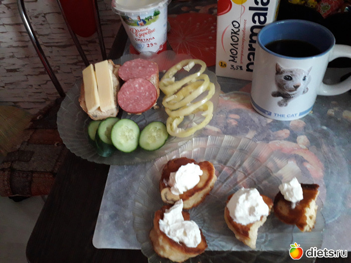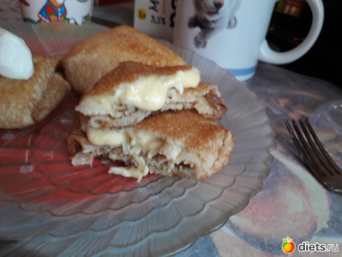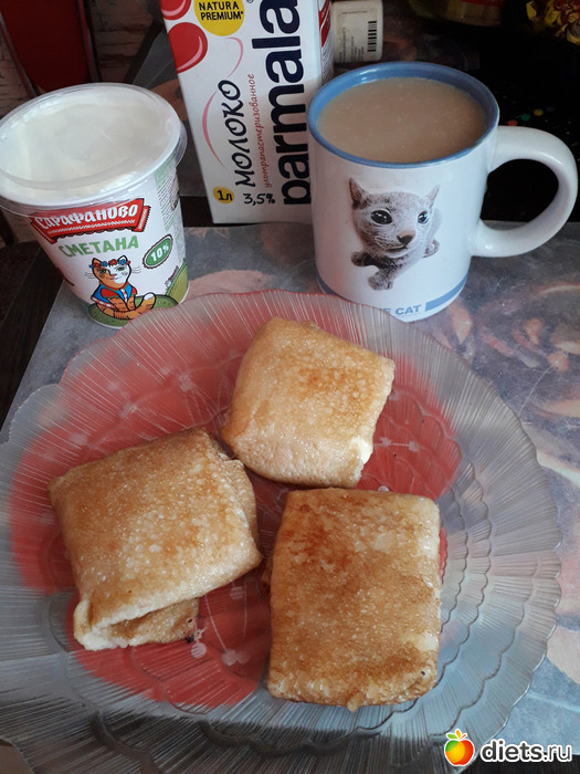 -Блинчики с начинкой-сыр+яйцо с сметаной, кофемолоко