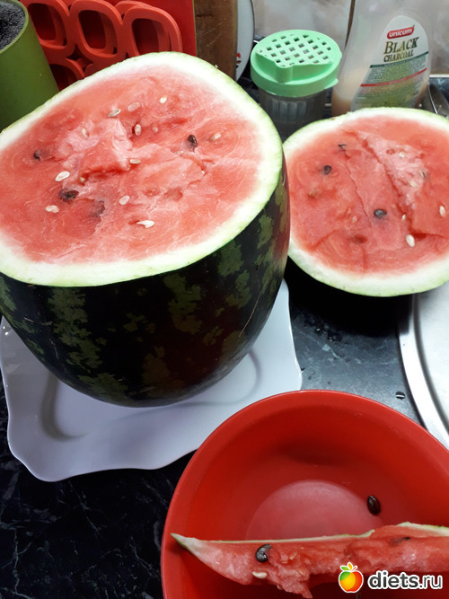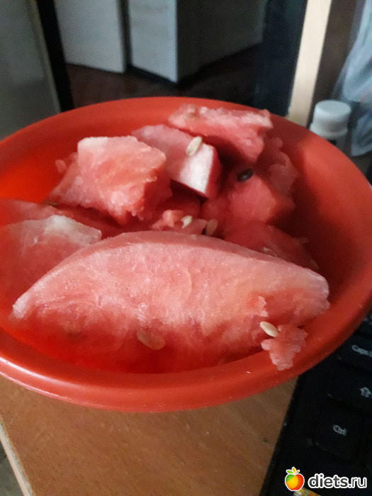 Далее-арбуз и подъедаю-доедаю наготовленное ранее!