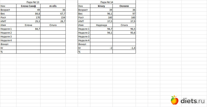 Я уже завтра выставлюсь.Увы,так бодро уже не уходит вес.Да и муж на неделе закормил рыбой солёной и копчёной.Надо заканчивать с этим.Сегодня у эндокринолога была,поменяла схему лечения,должна инсулинорезистентность снизиться,а там и вес.Надеюсь)