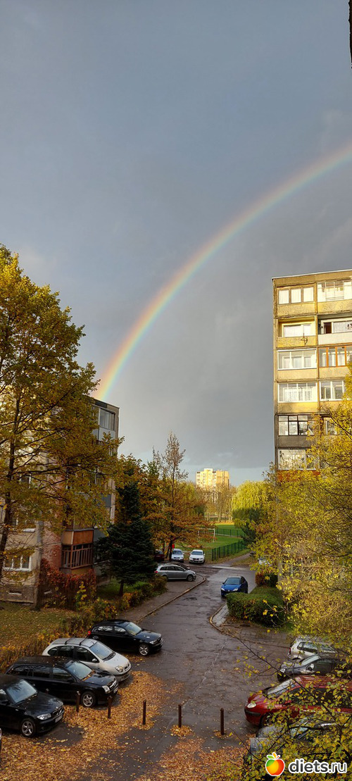 Мы с дочкой выходили "погулять" на балкон. Застали вот такую радугу