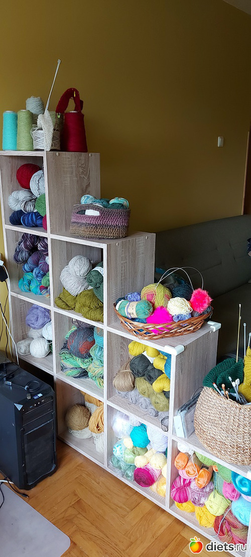 Эта пряжа в коллекцию, покажу ту часть моей пряжной коллекции, что украшает нашу гостинную (и еще много пакетов распихано по шкафам