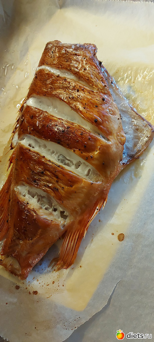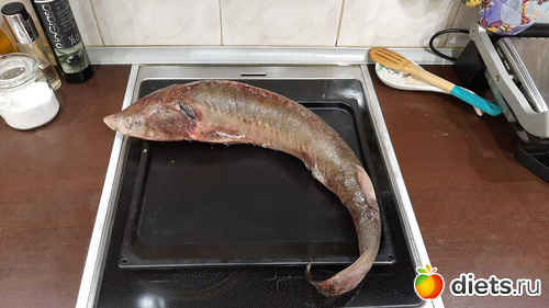Ну и немножко по питанию. Муж готовил рыбу, осетр