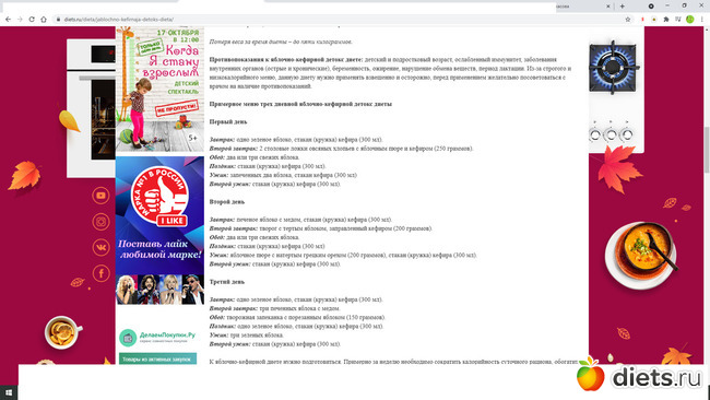 Нашла сейчас на просторах данного сайта детокс-диеты. Среди них была яблочно-кефирная диета рассчитанная на 3 дня. Ну вообщем уто хочет, то можете прочитать здесь. Ниже прилагаю фото с расписанным расписанием еды на день. Как относитесь к подобным диетам?