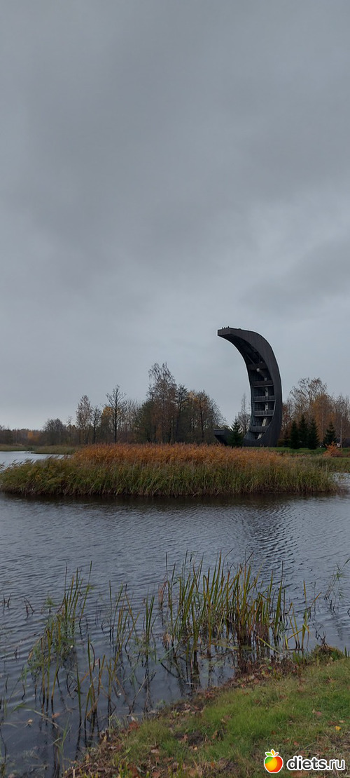 Следующей точкой была смотровая башня в форме каноэ. С башни открываются виды на уникальные карстовые озера