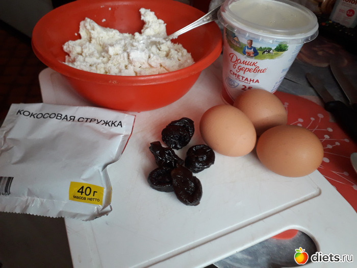 -Творожная запеканка с кокосовой стружкой и черносливом