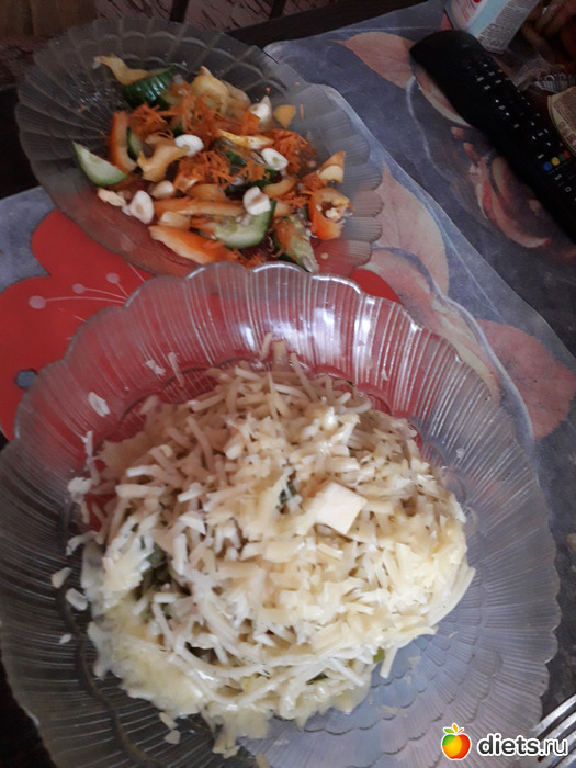 -Салат овощной с ароматным маслом, макароны с сыром и с кабачком(с понедельника)