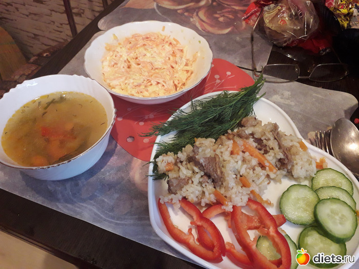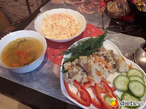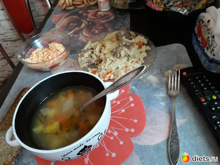 На обед-вчера сварила куриный бульон-вчера лапшу сварила на раз, сегодня-1л сварила картофельно-рисового супа. Теперь дня 3 буду есть в обед. Все лето, практически, не варила супы. Два или три раза варила и те не съедала. Сейчас поела с удовольствием!