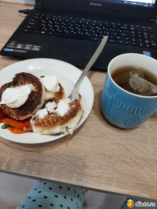 Так как из дома мне был выход воспрещён любимым (под угрозой лежать под одеялком до 7-го включительно), восхотелось мне на завтрак сырничков со сметанкой. А этого ермолинского добра у меня ещё килограмма 1,5))) Захочено - схомячено)))
