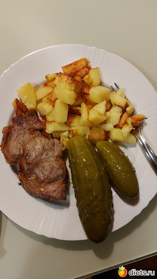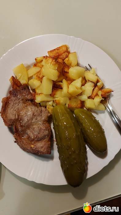Свинина с жареной картошкой (свинину он по прежнему не ест - это для нас с детьми)
