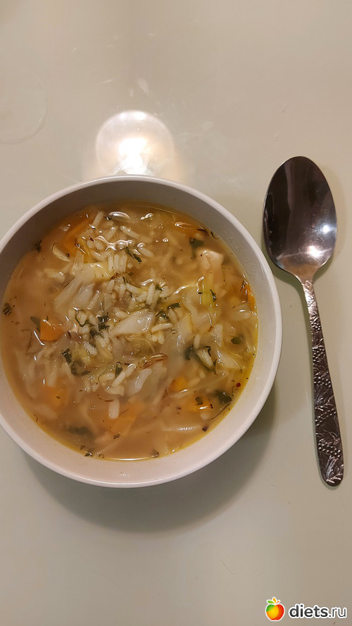 Единственное более-менее диетичное - суп, и то по моей просьбе. Говорит, это харчо